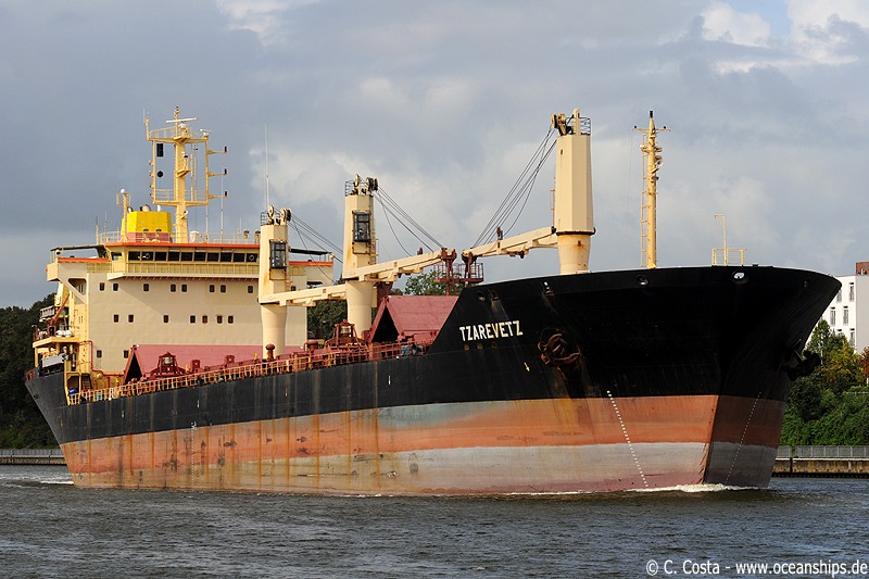 Bulk carrier Tzarevetz is passing Rendsburg during an eastbound voyage through Kiel canal on September 5th, 2009.