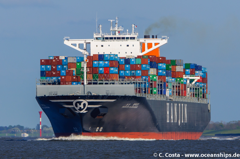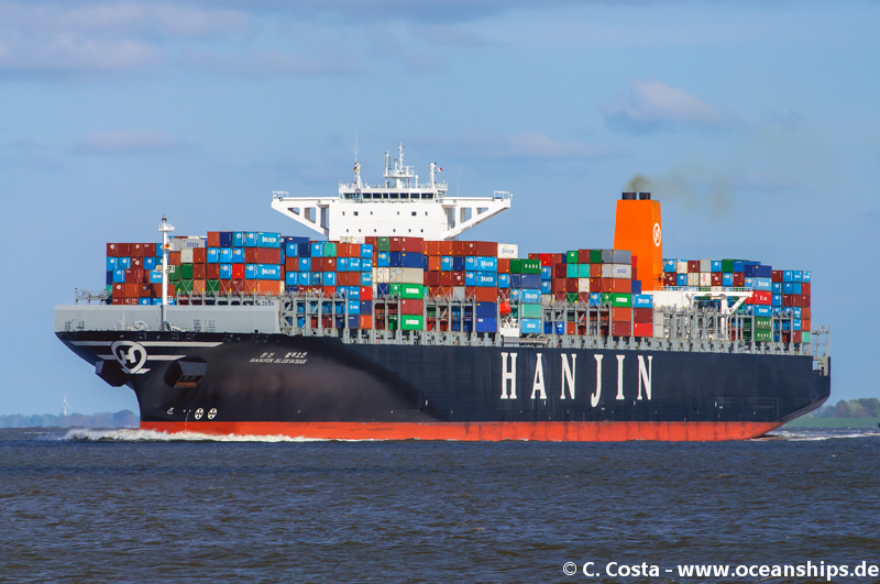 Hanjin Blue Ocean is passing Cuxhaven on May 03rd, 2014.