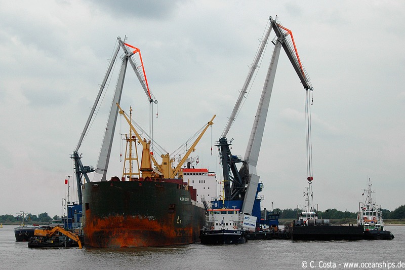 Around noon two floating cranes started to lighten the vessel by more than 8,000 tons.