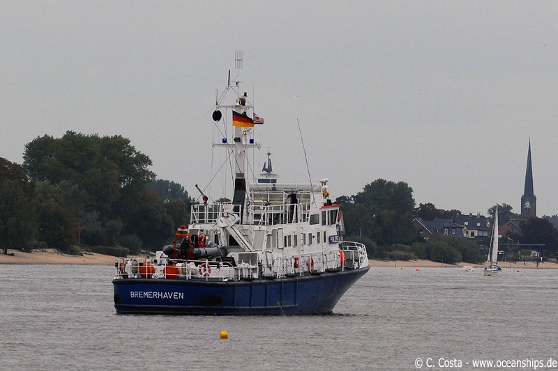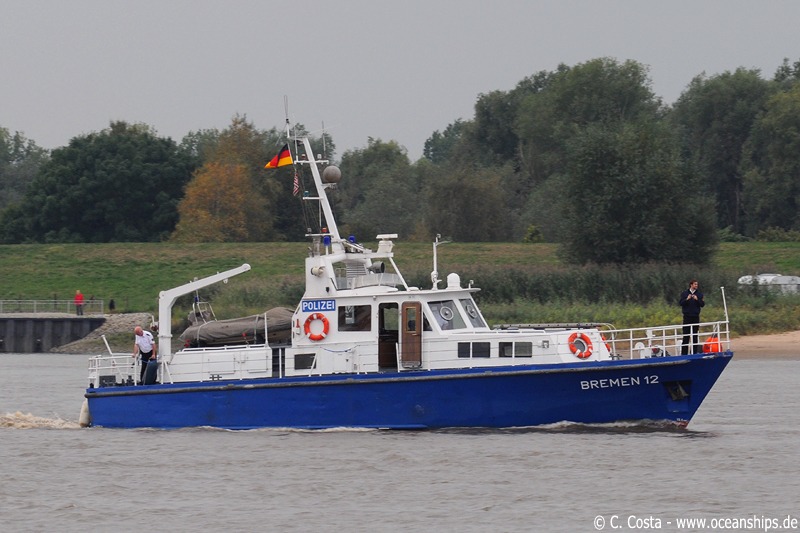 For security reasons the police vessel Bremen 12 secured the Southern end of the scene….