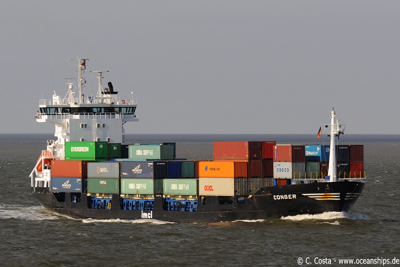 Feeder vessel Conger is passing Cuxhaven on September 16th, 2009.