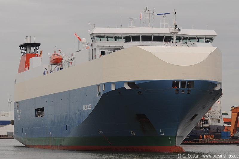 Vehicles carrier Baltic Ace is arriving in the port of Bremerhaven on September 25th, 2009. Built: 2007 | IMO No.: 9386213 | Gross tonnage: 23,498 | Flag: Bahamas | Car capacity: 2,130